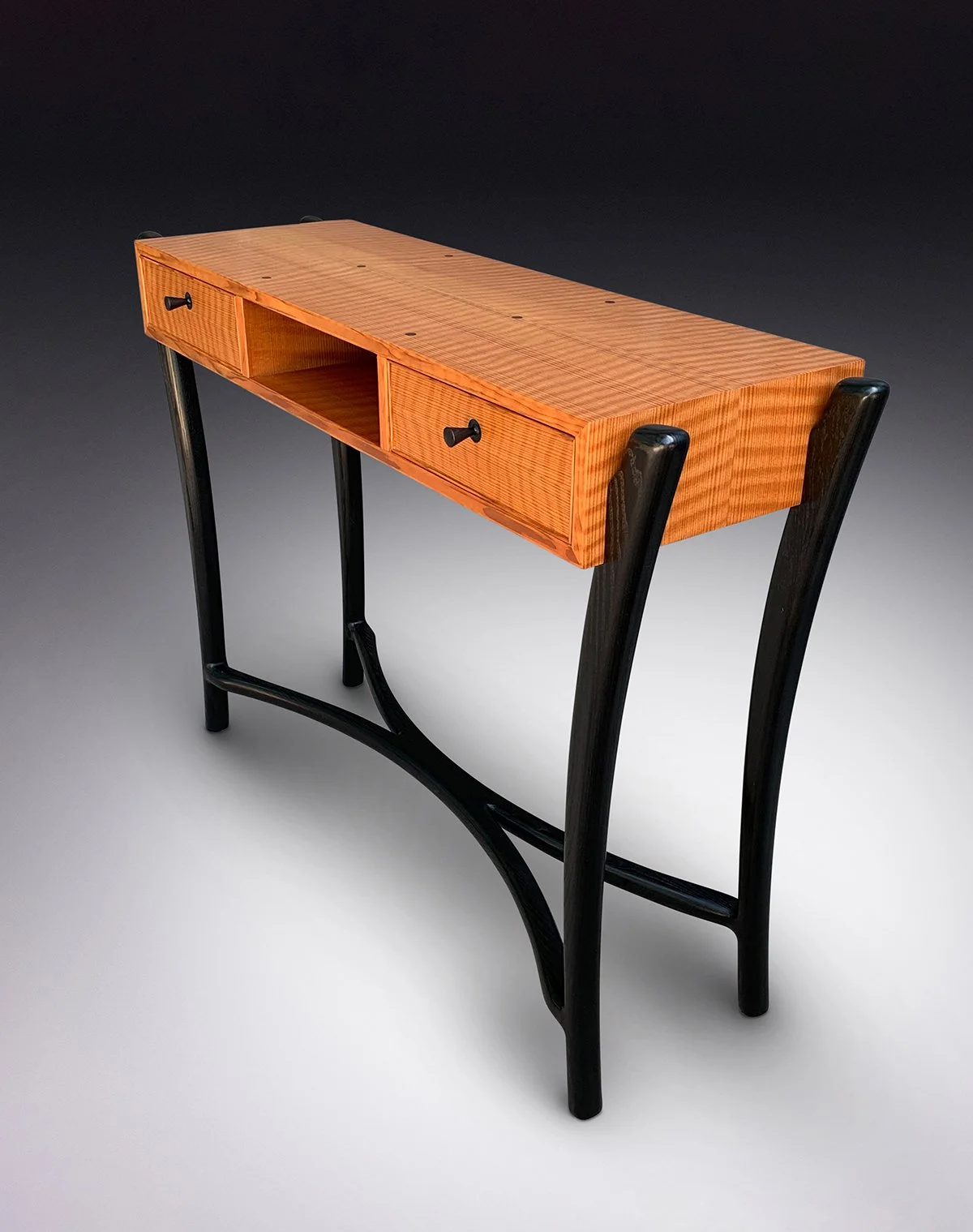 Monarch Console, Old Growth Curly Redwood and Ebonized Ash